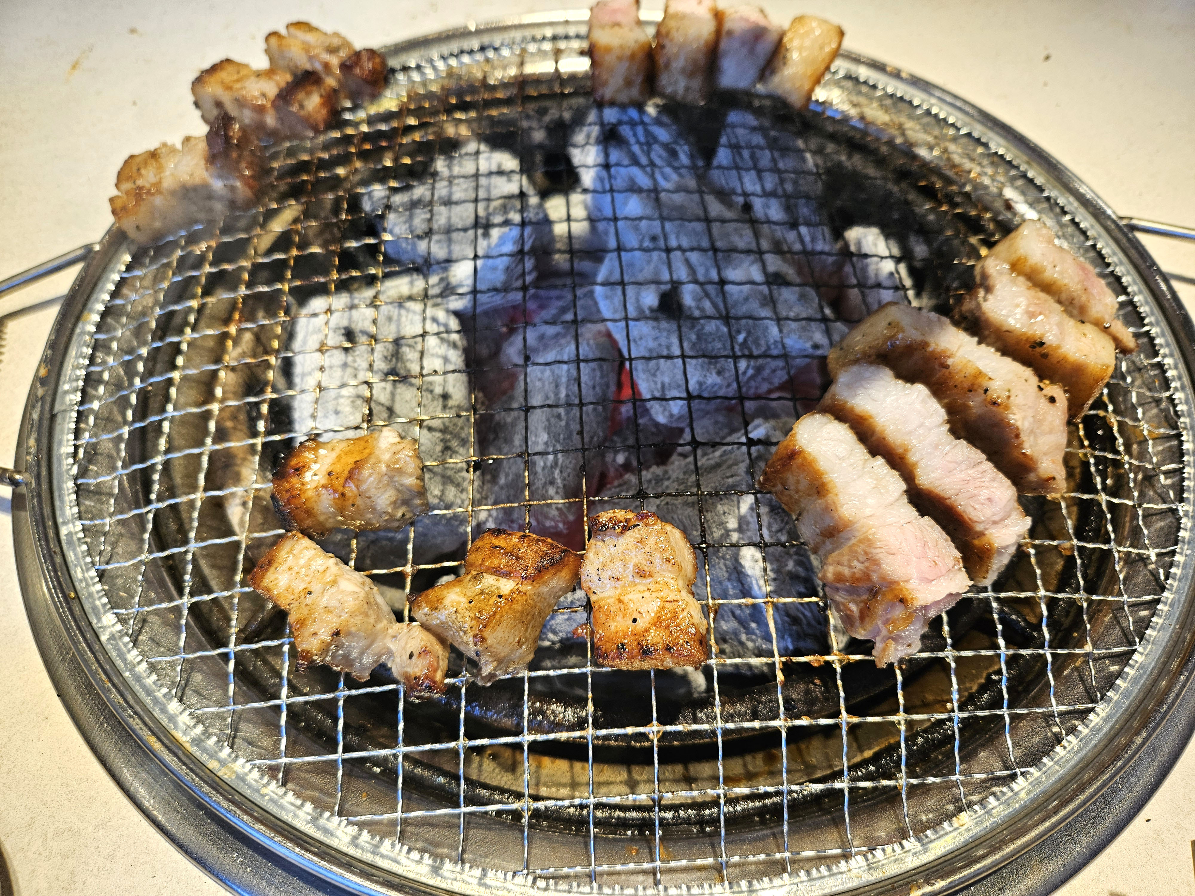 약간 더 구워야하는 고기를 셋팅해두고