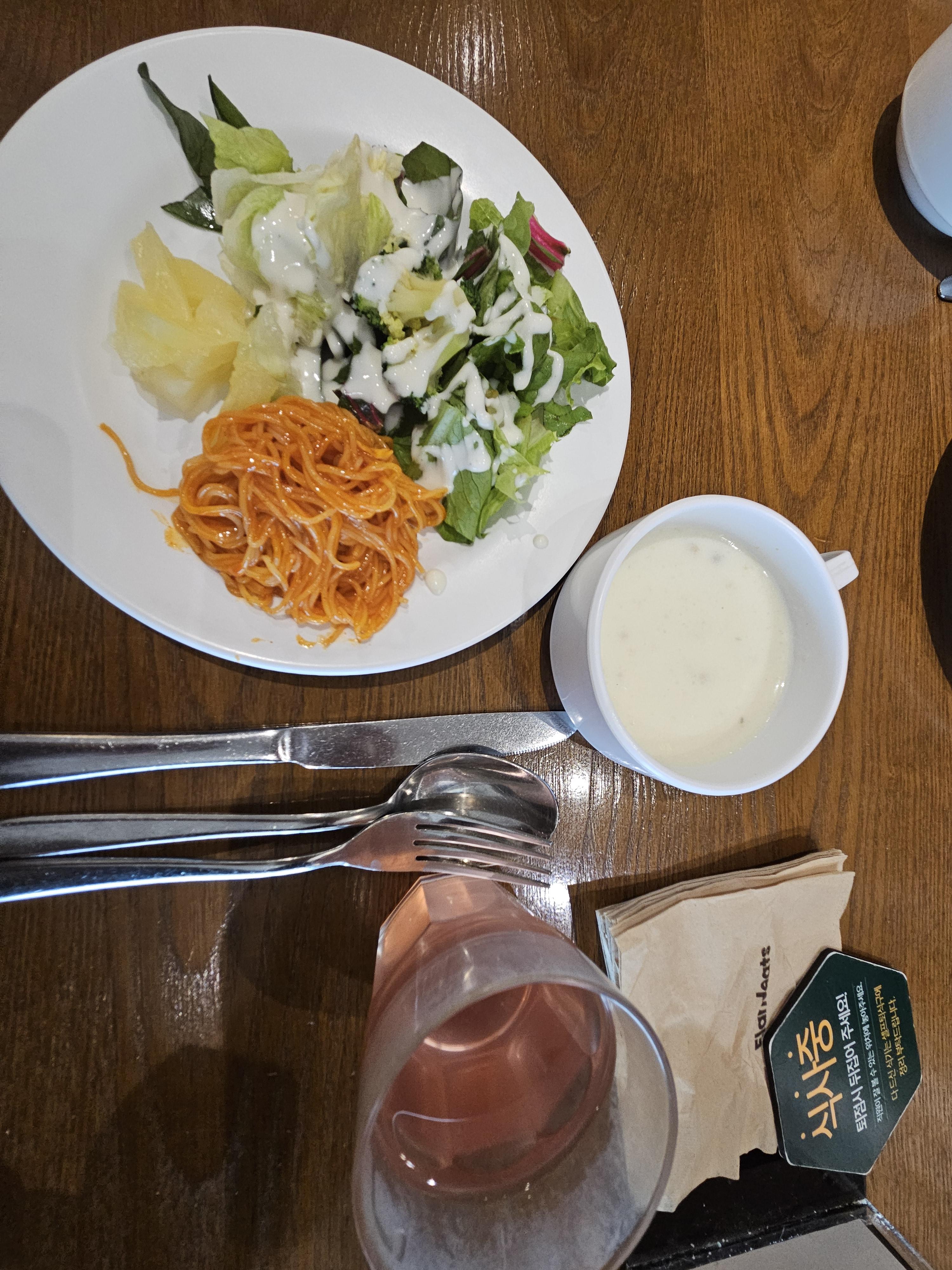 식전 샐러드도 마음껏 즐기고 각종 파스타와 누들 커리를 즐겼습니다.