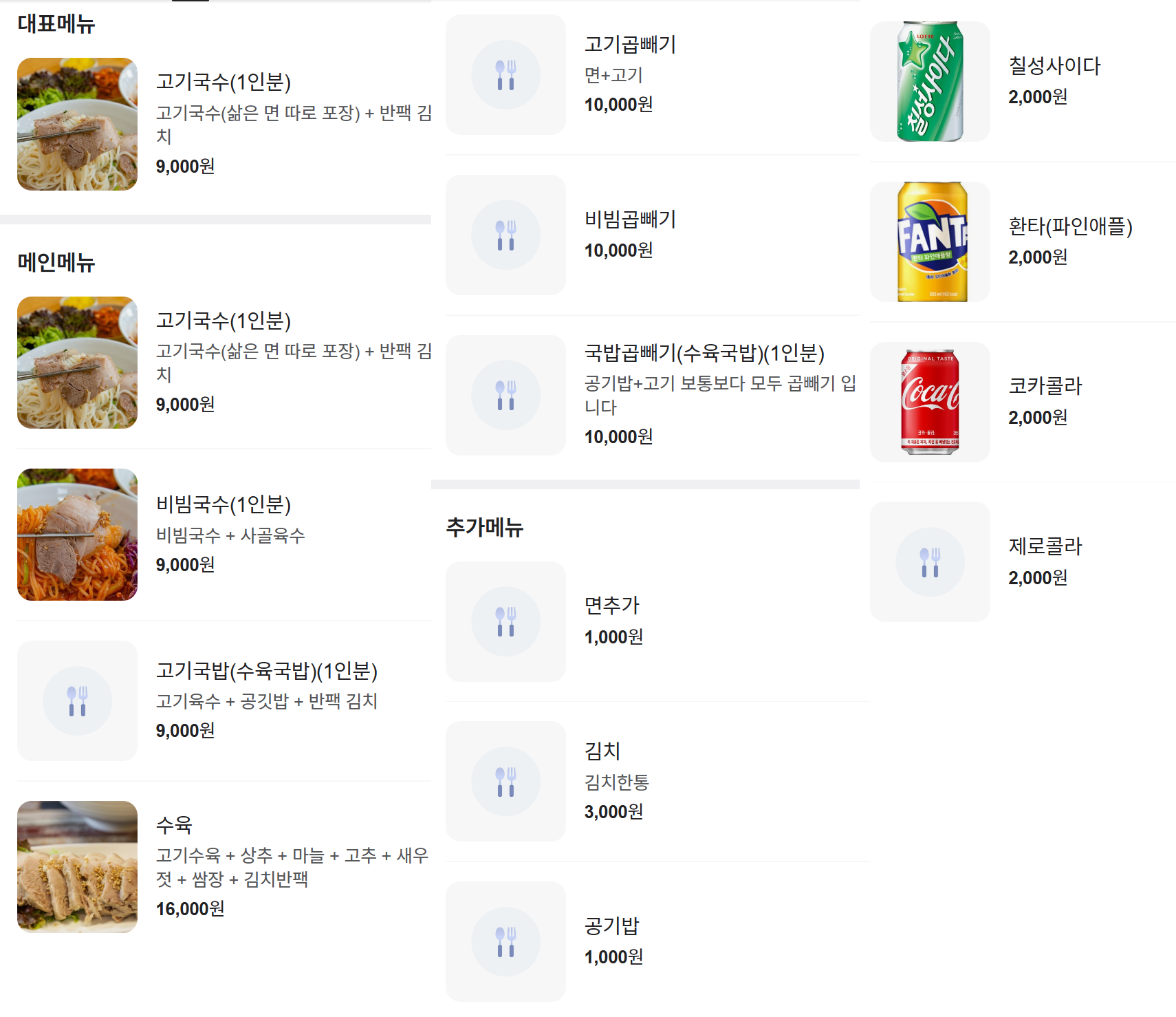 4명이서 방문하였고 고기국수(면추가)와 수육을 주문했어요