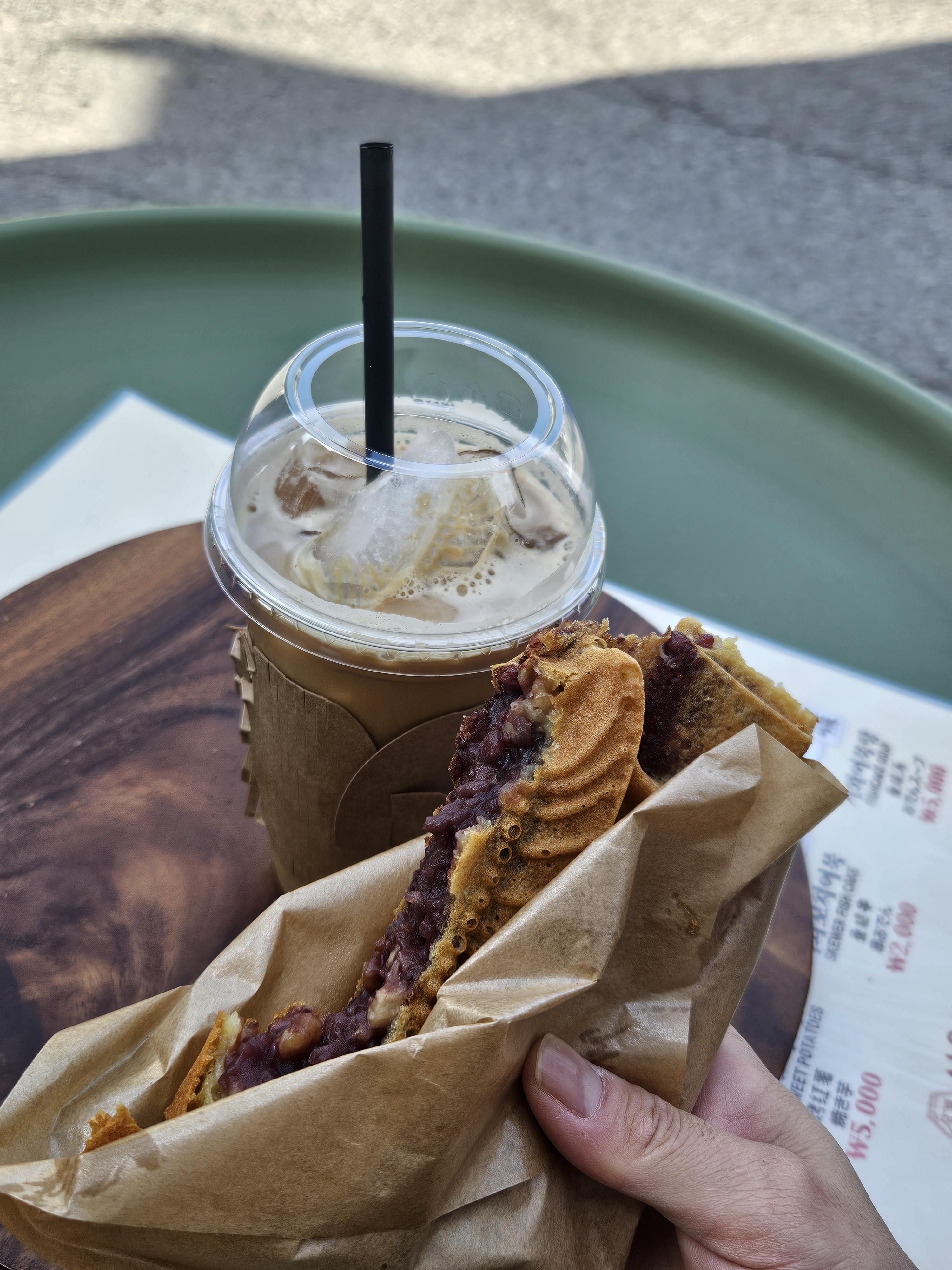 전 역시 팥!!! 그리고 아이스 믹스커피를 마셨답니다.