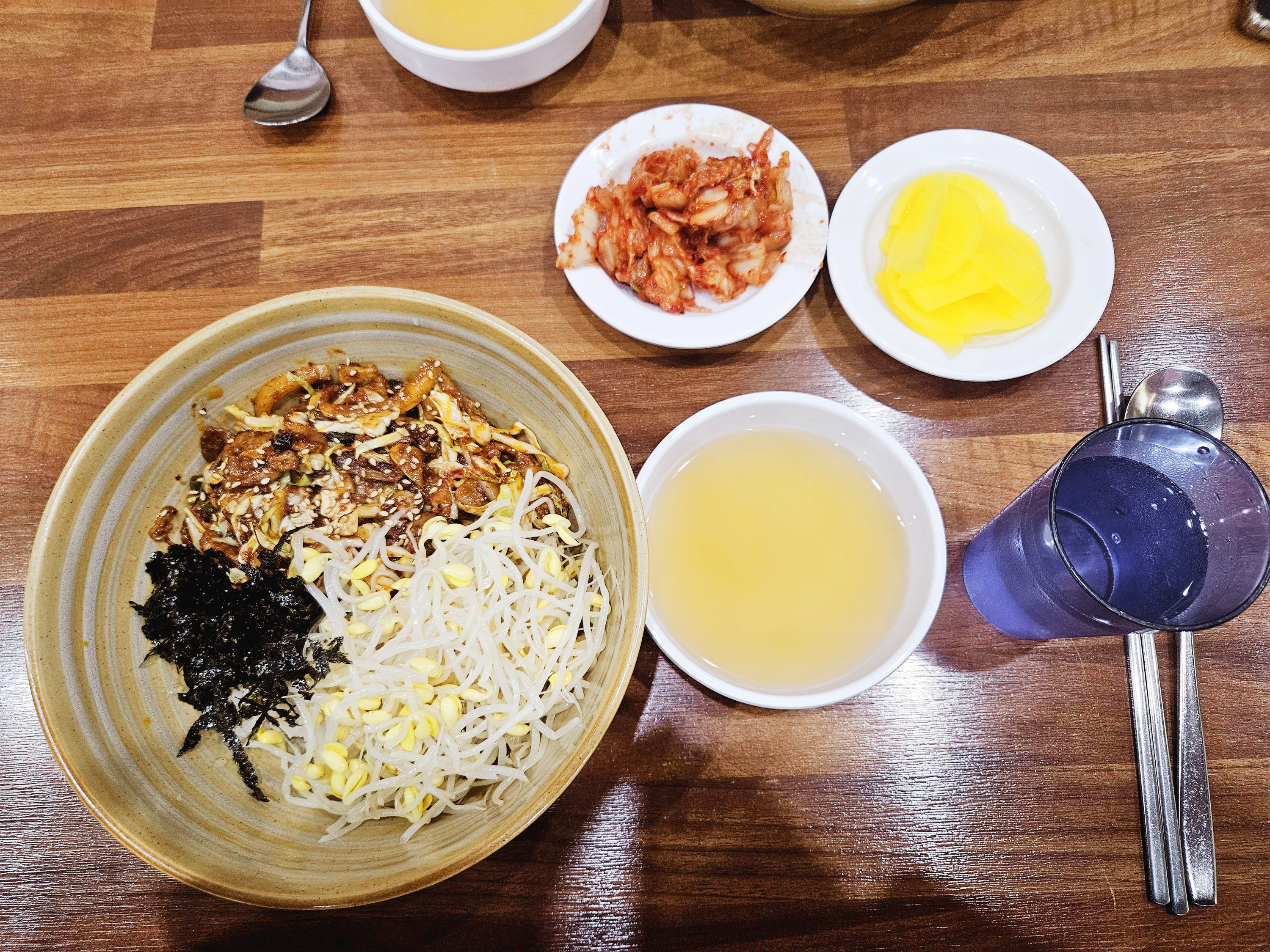 제육덮밥에 국수국물이 나와서